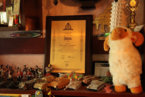 Вся семья юного писателя тепло и радушно приняла гостей. Серафим показал большую домашнюю библиотеку художественной и духовной литературы, которая служит ему подспорьем в творческой работе, а также провел небольшую экскурсию по храму во имя святого благоверного князя Александра Невского при бывшем духовном училище, где он с пяти лет поет на клиросе и помогает в алтаре. Ныне этот храм является подворьем Св. Николо-Шартомского монастыря на территории Шуйского Государственного Педагогического университета.
