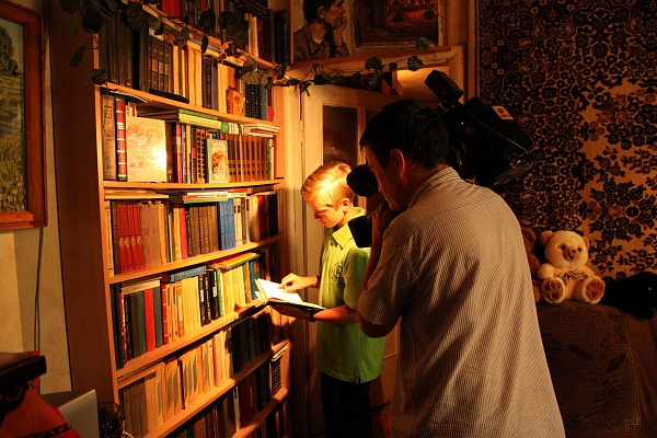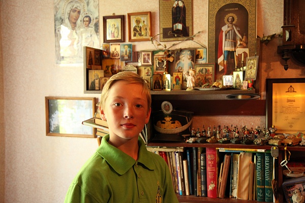 Вся семья юного писателя тепло и радушно приняла гостей. Серафим показал большую домашнюю библиотеку художественной и духовной литературы, которая служит ему подспорьем в творческой работе, а также провел небольшую экскурсию по храму во имя святого благоверного князя Александра Невского при бывшем духовном училище, где он с пяти лет поет на клиросе и помогает в алтаре. Ныне этот храм является подворьем Св. Николо-Шартомского монастыря на территории Шуйского Государственного Педагогического университета.